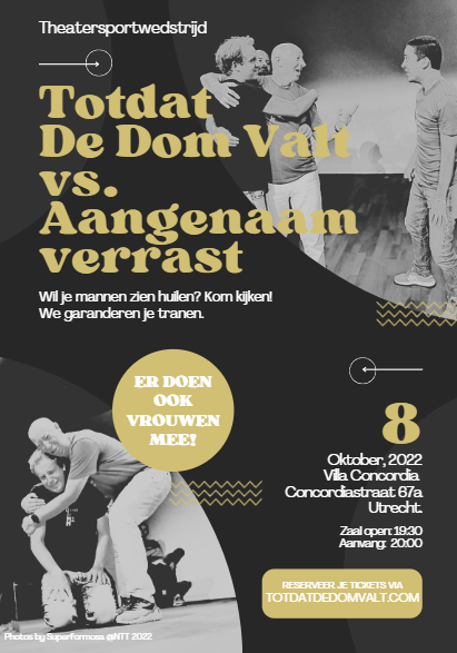 Auw!! Soms gaat het er pittig aan toe tijdens onze voorstelling. Kun jij wel tegen een stootje? Op 25 maart spelen we weer. Op de vertrouwde plek: Villa Concordia. Zet ‘m in je agenda en/of reserveer hier vast je tickets!